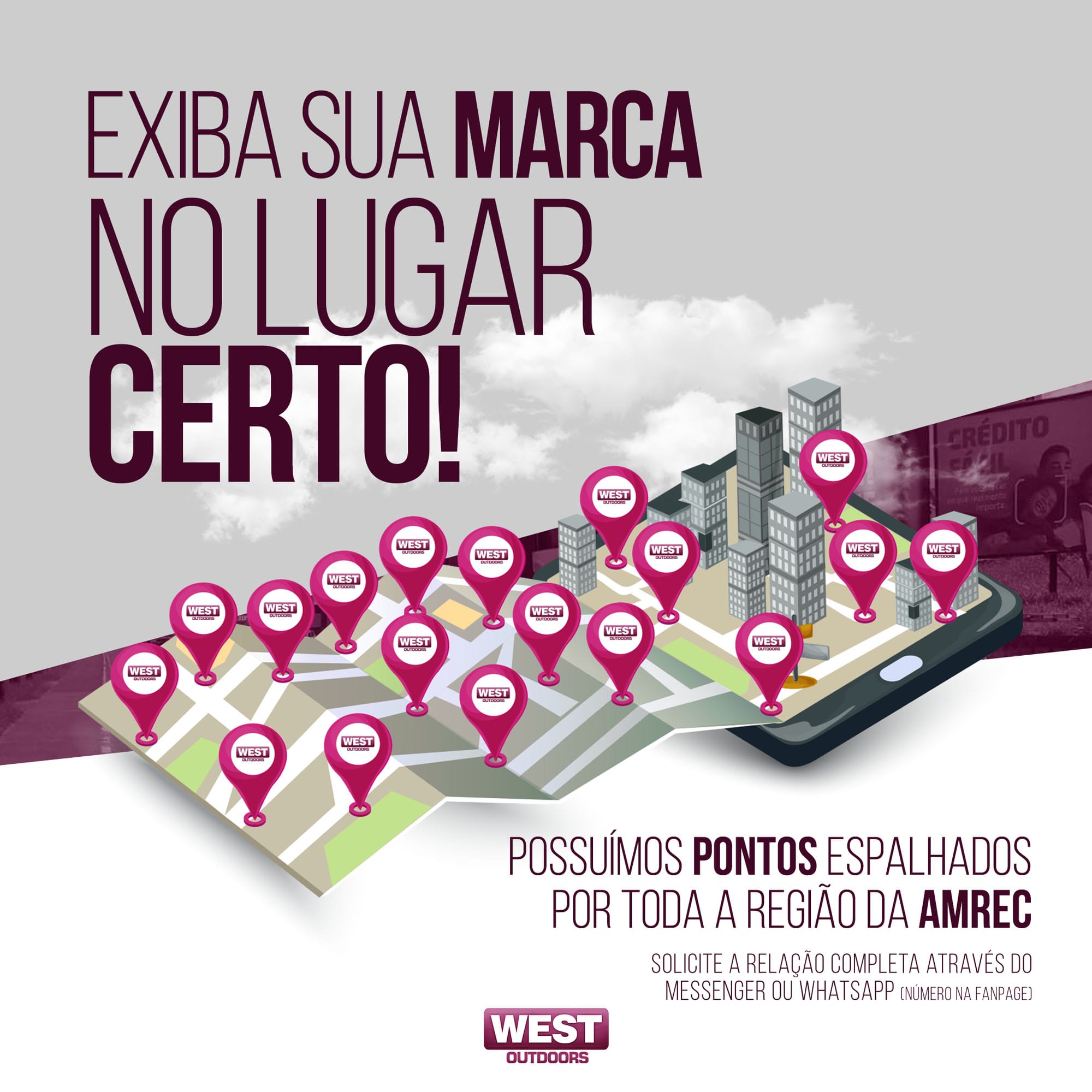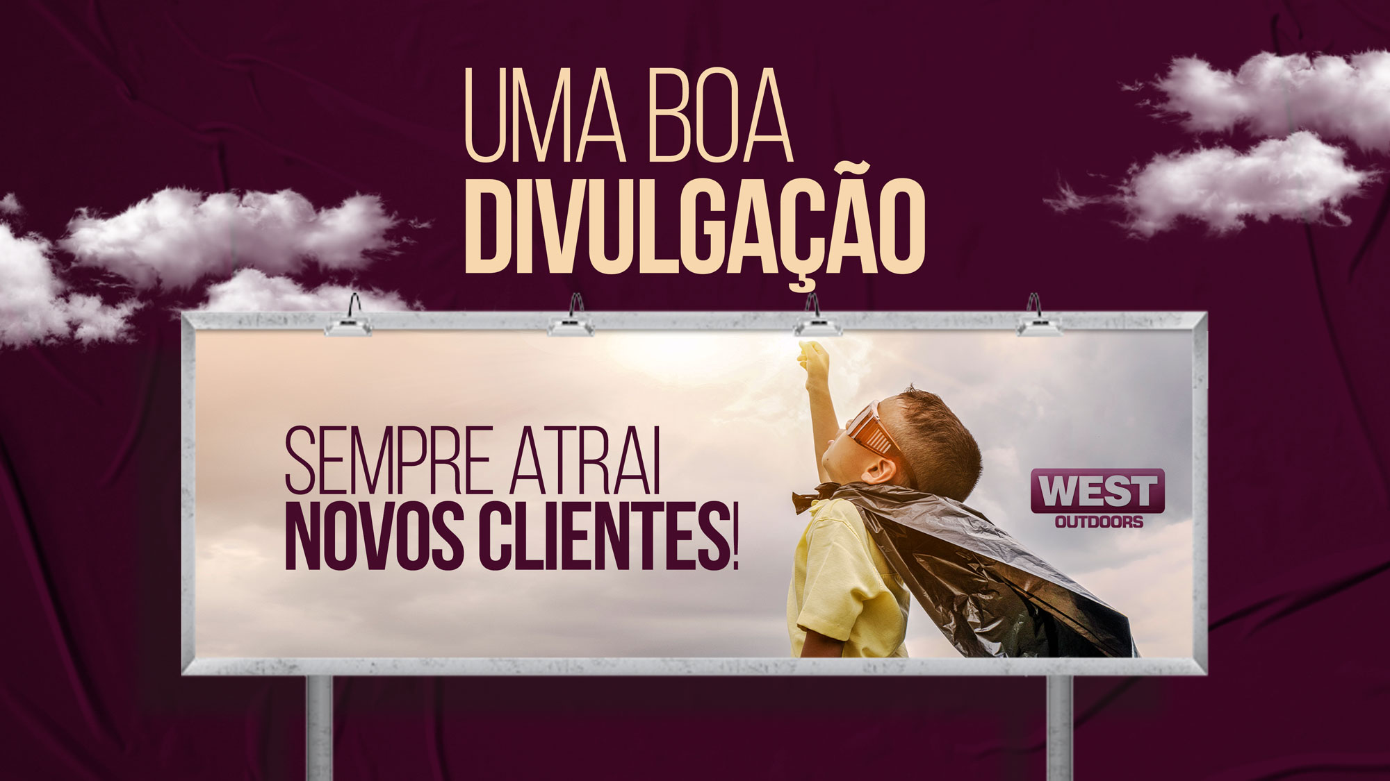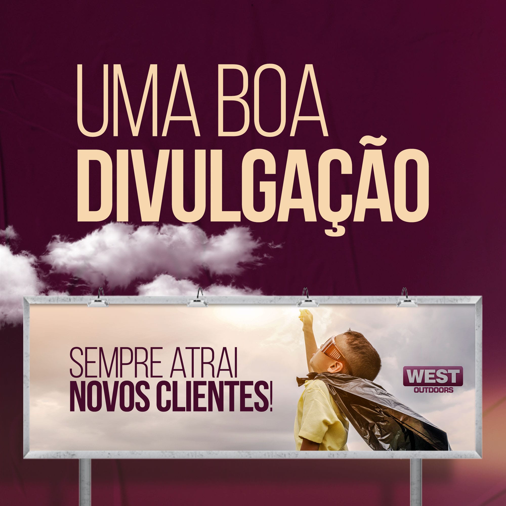 A West Outdoors é especializada em assessoria, planejamento e execução de mídia exterior com foco em campanhas de Outdoor em todo sul do Estado de Santa Catarina, tendo como objetivo o oferecer ótimas opções de mídia com soluções criativas, inovadoras e com alto grau de impacto visual de seus pontos.
